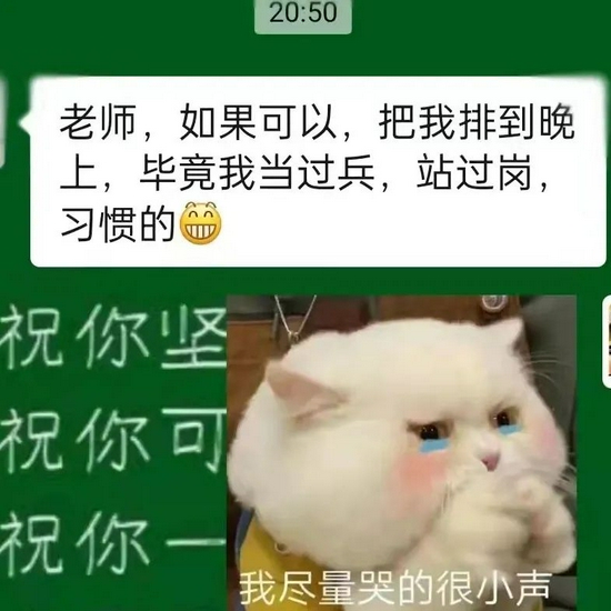 “老师,如果可以请把我安排在晚上