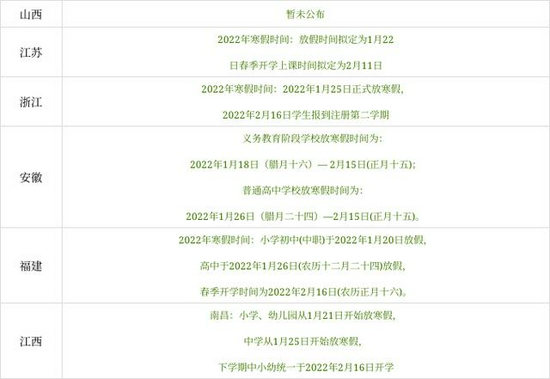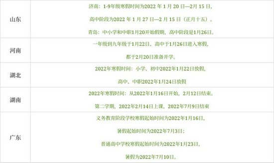 一起来看看各地区的寒假时间安排吧