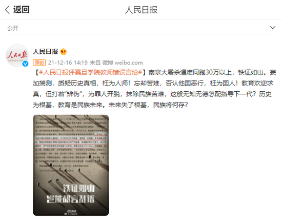 南京大屠杀遇难同胞30万以上,铁证如山。妄加揣测,质疑历史真相,枉为人师!忘却苦难,否认他国恶行,枉为国人!教育欢迎求真,但打着“辨伪”,为罪人开脱,抹除民族苦难,这般无知无德怎配指导下一代?历史为根基,教育是民族未来。未来失了根基,民族将何存?