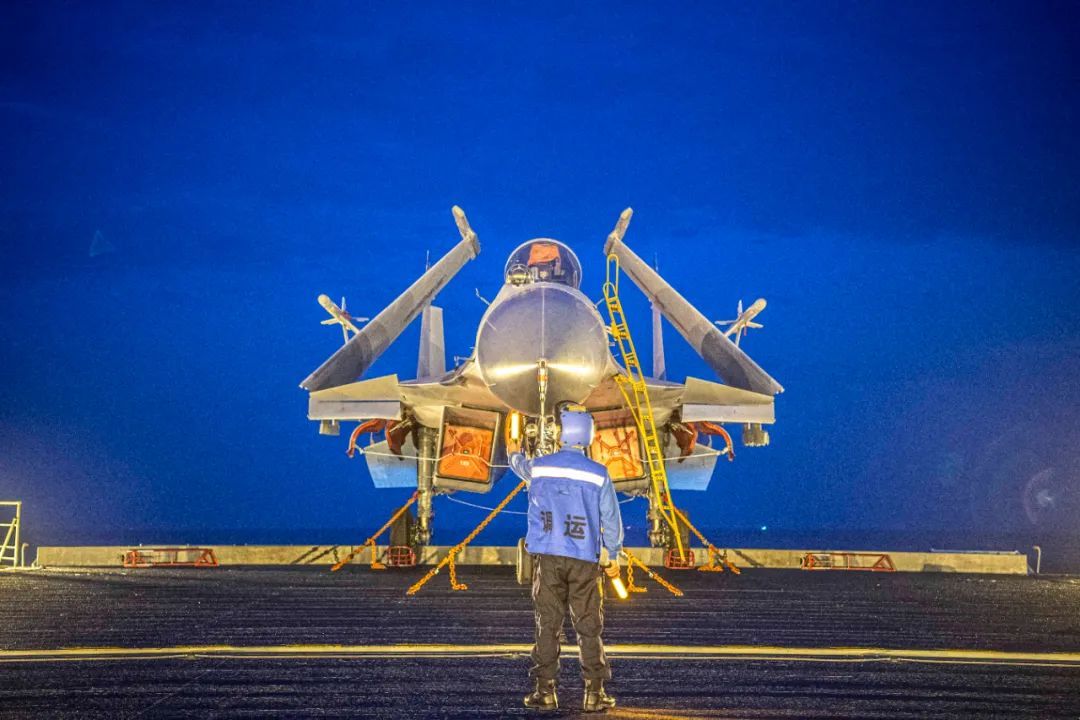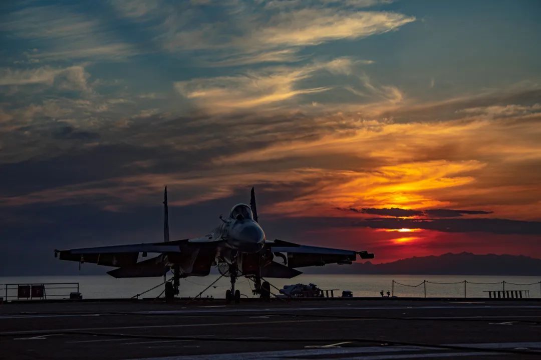 ▲歼-15舰载机起飞夜幕降临