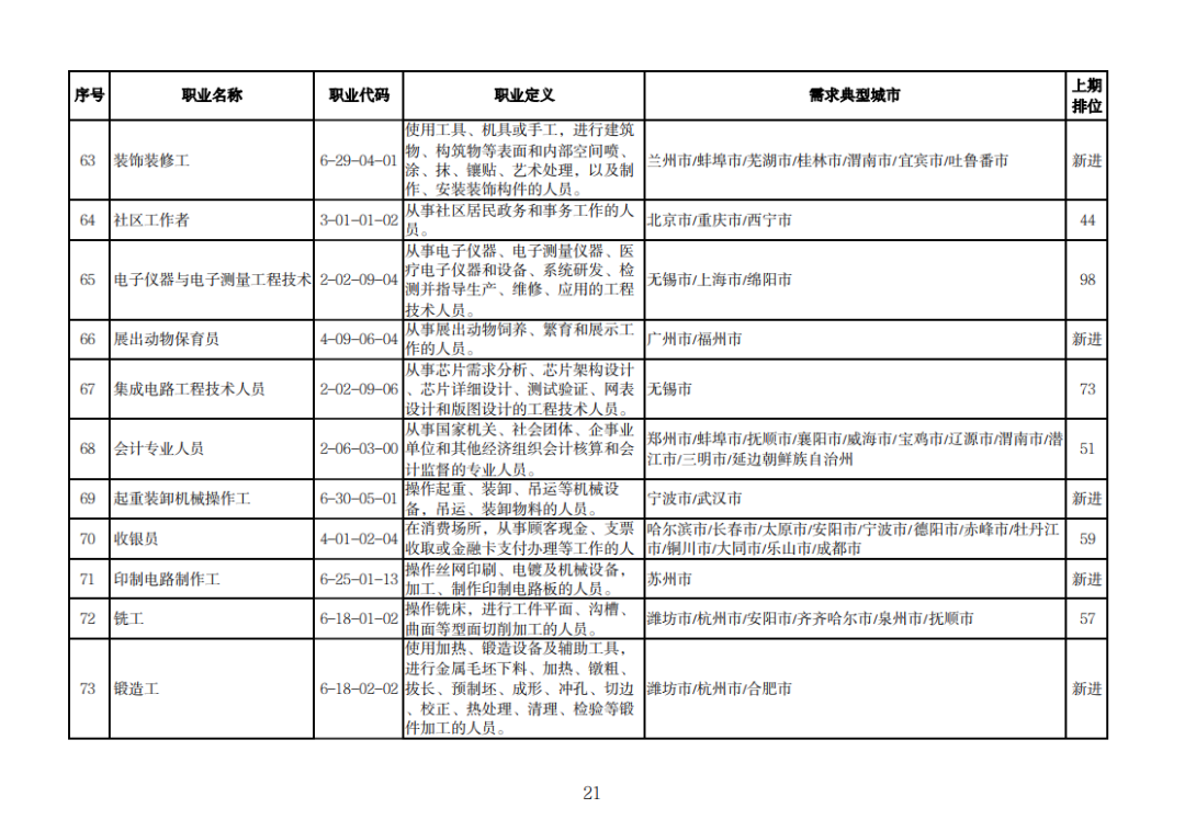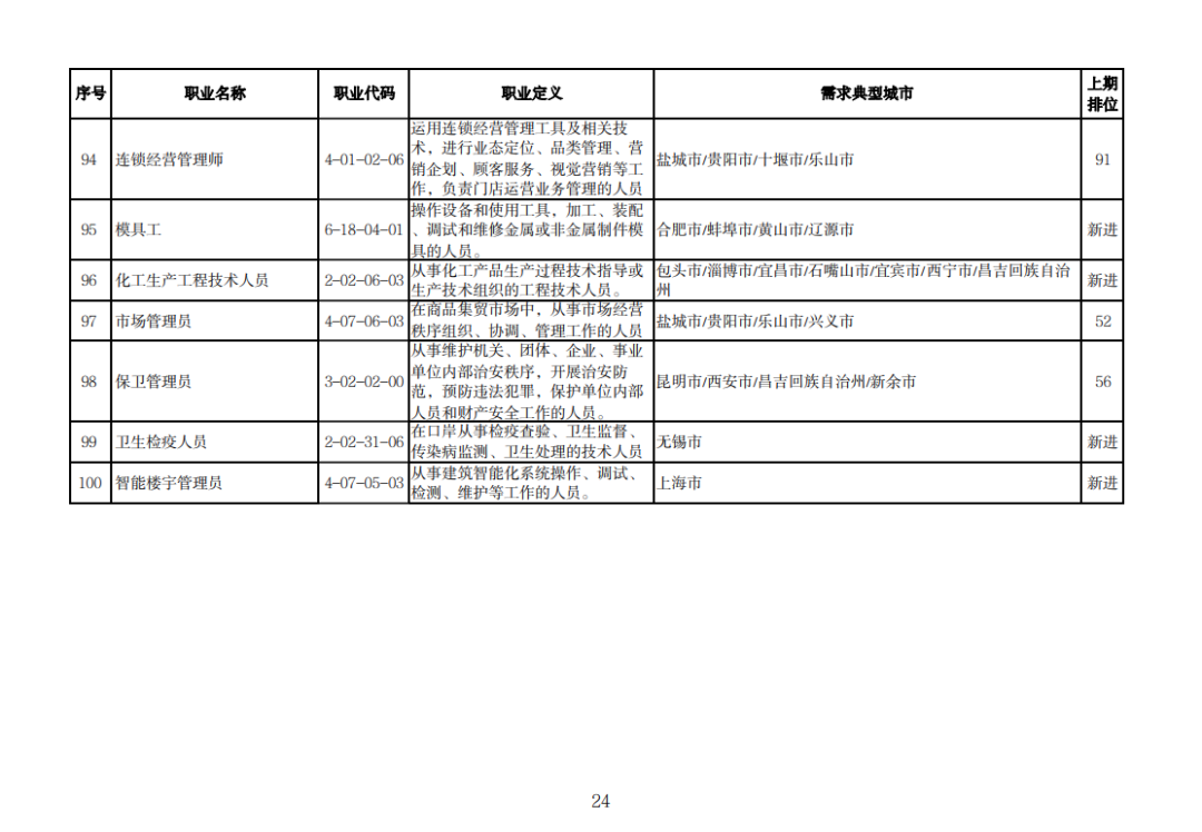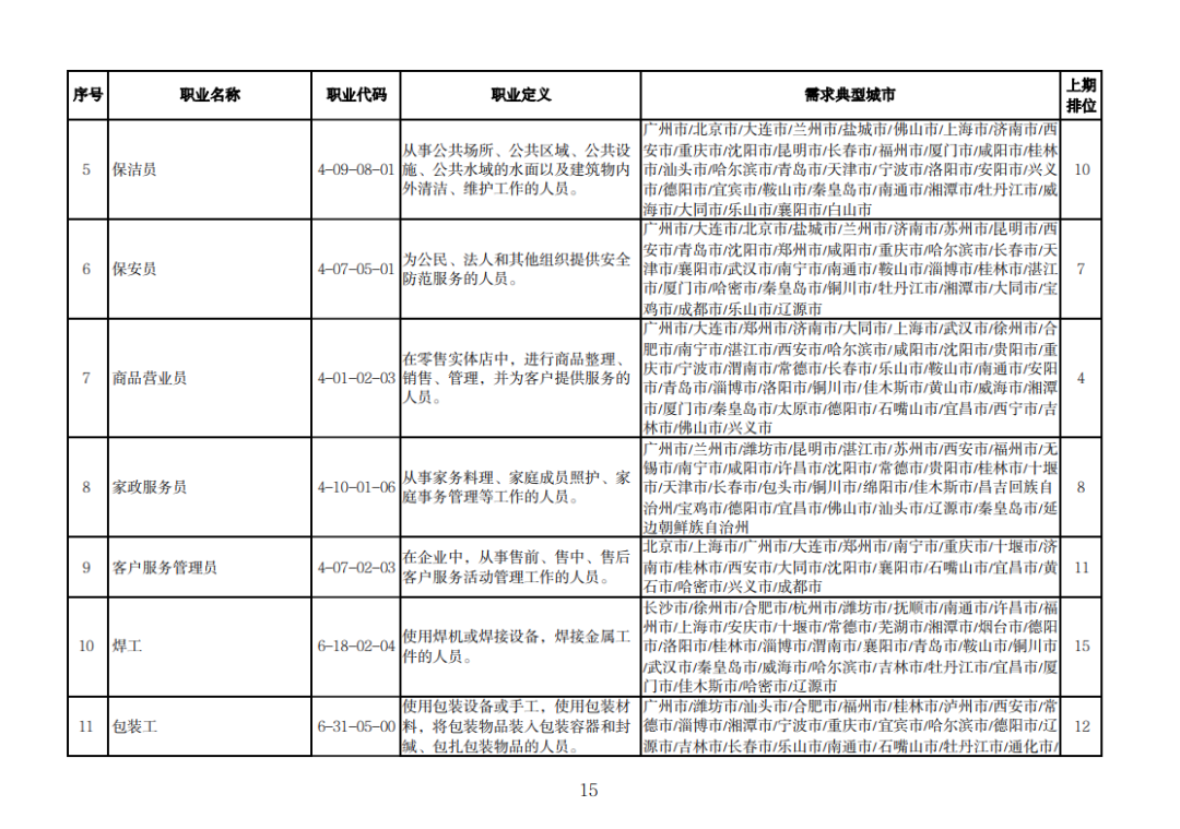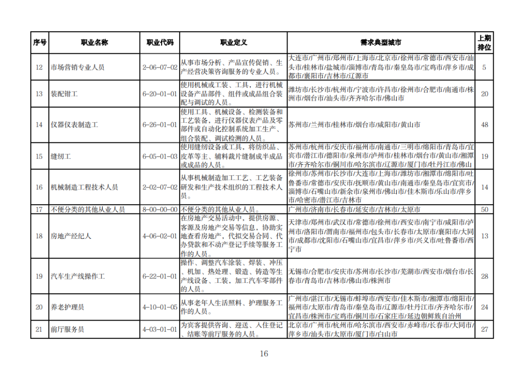 该排行是由中国就业培训技术指导中心组织102个定点监测城市公共就业服务机构,采集人力资源市场“招聘需求人数”和“求职人数”缺口排名前20的职业岗位信息,综合考量岗位缺口数量、填报城市数量等因素加工汇总整理形成。详情可查询人社部官网。
