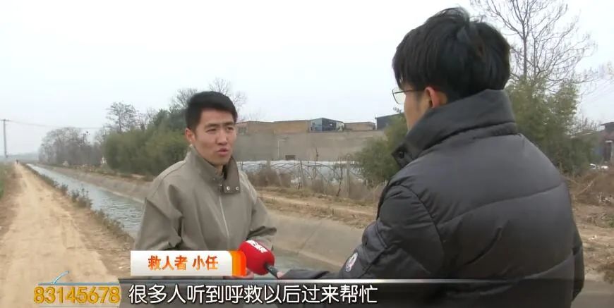 小任:“当时我正回家呢,路上就看到有人在里面漂着,当时以为人都不在了,结果仔细一看还在活动,就赶紧救人,后来有同村的人拿来长杆子,这才把人救起来。”