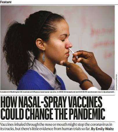 图源于《自然》杂志:鼻喷疫苗或将改变新冠大流行区别于既往使用的疫苗,鼻喷疫苗进入人体的路径与奥密克戎感染人体的路径是一样的。