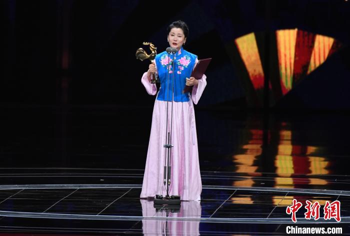 中国戏曲表演艺术家、银幕演员何赛飞凭借电影《追月》中“戚老师”一角,荣膺第36届中国电影金鸡奖最佳女主角。中新网记者王东明摄